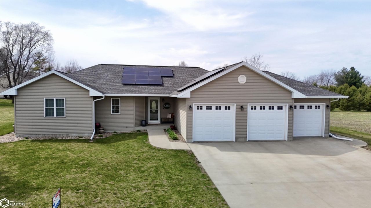 If you're looking for space and privacy with a scenic backyard this 5 bed, 3 bath home on the edge of town checks all those boxes! Inside you'll find an open concept living area with a cozy fireplace and a designer kitchen featuring cherry wood cabinets and double ovens, stylish finishes, luxury vinyl flooring, updated sleek bathrooms, and a fully finished basement. New A/C and water heater, as well as solar panels make this home energy efficient and comfortable. Outside you'll discover a big fenced in yard, a deck (new in 2024), 2 patio sitting areas with a fire pit. Top it all off with a heated 3 car garage and you have it all here! Call Today for a private tour.