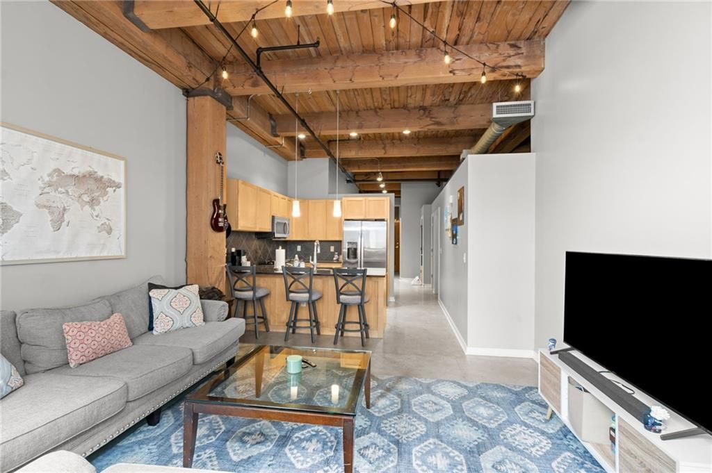 Own a piece of Kansas Citys historic Garment District without stretching your budget. This 1-bedroom, 1-bath loft at Fountains on Broadway delivers the character buyers love with a price point that makes downtown living truly attainable.Exposed brick, warm timber ceilings, and polished concrete floors create an authentic loft feel, while oversized west-facing windows bring in natural light and offer views toward the Missouri River?an added bonus not often found at this price point. The open layout flows easily between kitchen, dining, and living areas, making the space feel larger, brighter, and perfect for everyday living, working from home, or hosting friends before a night out.The kitchen features black granite countertops, stainless appliances including a gas stove (yes chefs!), and generous cabinetry with bar seating that keeps everything connected and functional. The bedroom provides a comfortable retreat while maintaining the industrial style that defines true loft living. In-unit laundry and included appliances make this home move-in ready from day one.Life at Fountains on Broadway extends beyond your front door with secure access, two elevators, fitness center, theater room, clubhouse, and private storage. Step outside and youre in the center of it all?just blocks from the streetcar, River Market, local coffee shops, restaurants, and downtown nightlife, with quick highway access when you need it.Whether youre buying your first place, simplifying your lifestyle, or looking for a low-maintenance city home, this is a smart opportunity to get into one of downtown KCs most established loft communities. Opportunities at this price point in the Garment District are becoming increasingly limited.